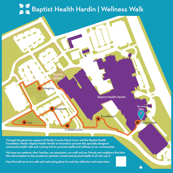 Located on the Baptist Health Hardin hospital campus, the Community Health Walk and Running Trail offers a comfortable and accessible space for walking, jogging and wellness. Generously and fully funded by the Hardin County Fiscal Court through the Baptist Health Foundation Hardin, the one-mile loop trail is open to the public 24/7 and reflects the hospital’s commitment to creating resources that support both physical and emotional well-being. Designed as a long-term investment in the health and wellness of the region, it stands as a testament to the power of community partnership in promoting healthy lifestyles.